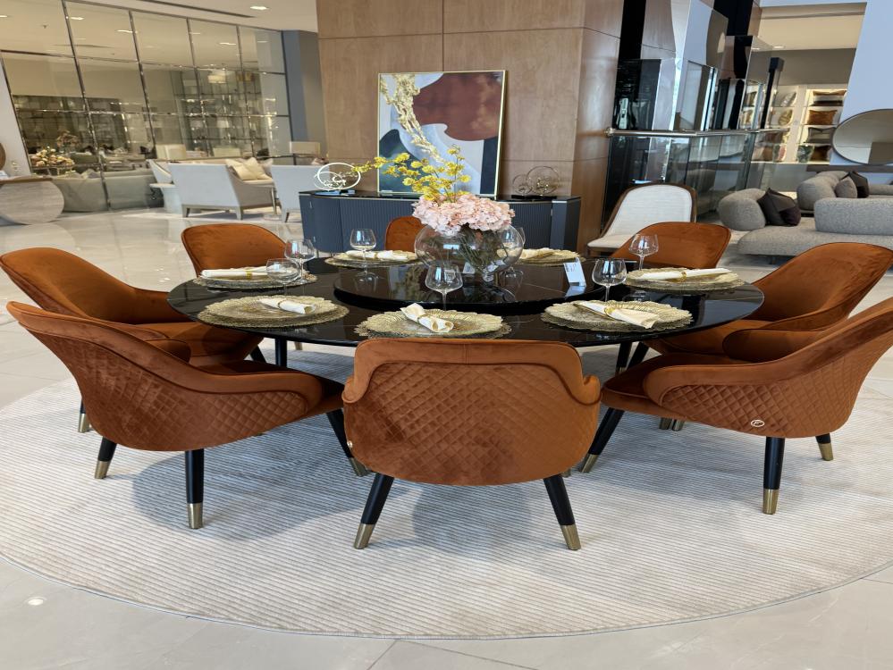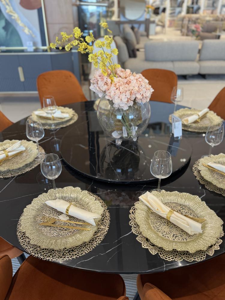 - الطاولة السفلية: رخام أسود فاخر ثابتة